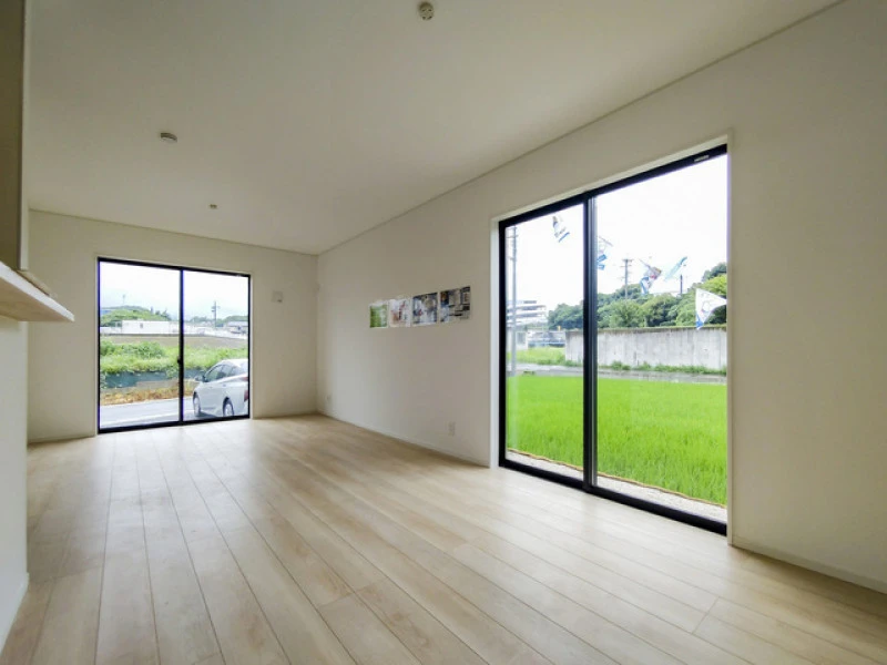 | 設備 | ガスその他、電気、上水道、下水道、システムキッチン、カウンターキッチン、浄水器、IHクッキングヒーター、給湯、トイレ2箇所、温水洗浄便座、シャンプードレッサー、浴室乾燥機、フローリング、複層ガラス、ルーフバルコニー、オール電化、収納スペース、床下収納、駐車3台以上可、ディンプルキー、モニタ付インターホン、火災警報器等設置済、プロパンガス、上水道、下水道、側溝、電気 | ||