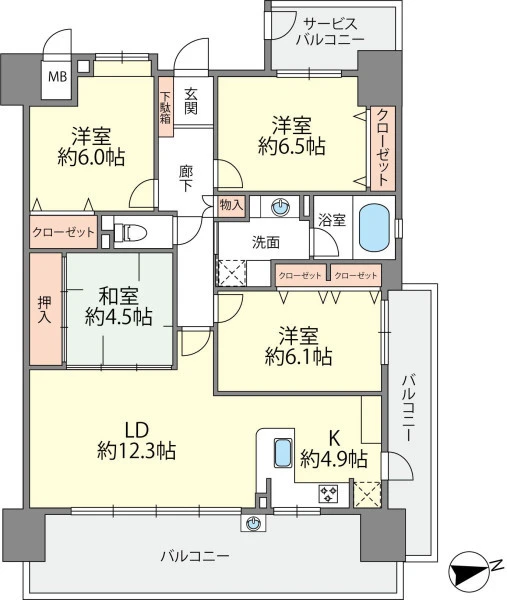 | 間取り | 4LDK | 間取り向き | (角部屋) |