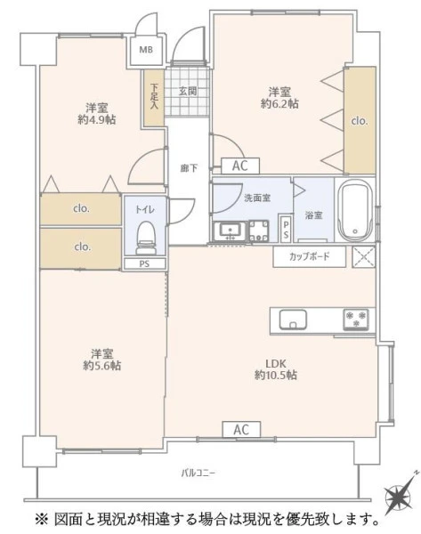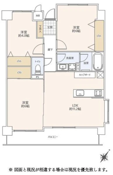 | 間取り | 3LDK | 間取り向き | (角部屋) |