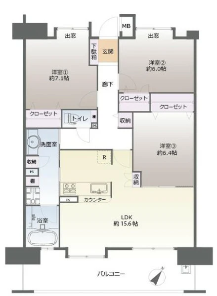 | バルコニー面積 | 16.4㎡ | バルコニー向き | 南西 |