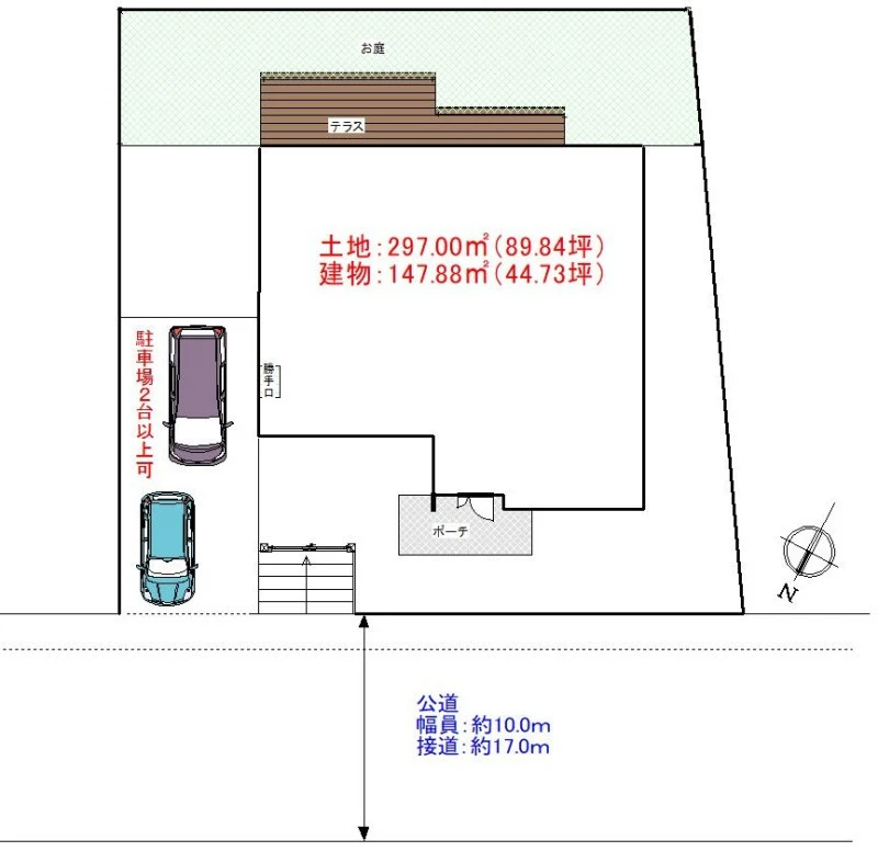 | 土地面積 | 297㎡(公簿) | 私道面積 | 私道負担面積無 |