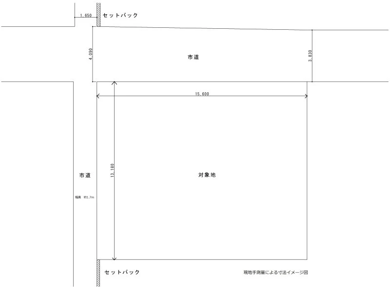 角地 北 間口15.6m 幅4m 西 間口13.1m 幅1.7m |