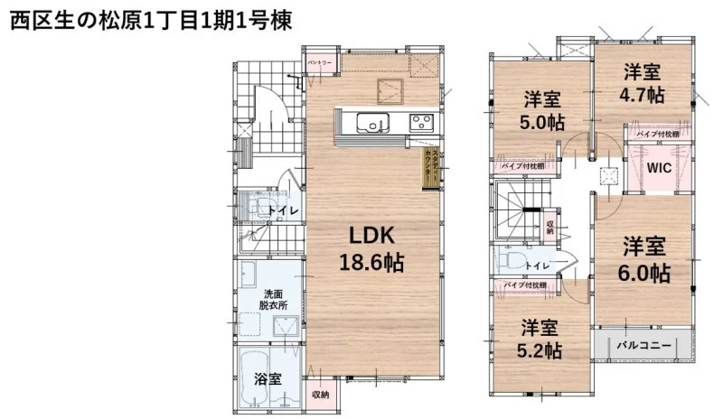 | 設備 | プロパンガス、電気、上水道、下水道、側溝、システムキッチン、カウンターキッチン、食器洗浄乾燥機、追焚機能、トイレ2箇所、温水洗浄便座、シャンプードレッサー、浴室乾燥機、複層ガラス、ウォークインクローゼット、床下収納、駐車2台可、モニタ付インターホン、火災警報器等設置済、プロパンガス、上水道、下水道、側溝、省エネ給湯器、電気 | ||