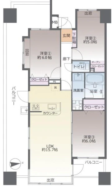| 間取り | 3LDK | 間取り向き | (角部屋) |